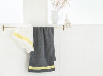 黄色のラインがおしゃれなタオル。