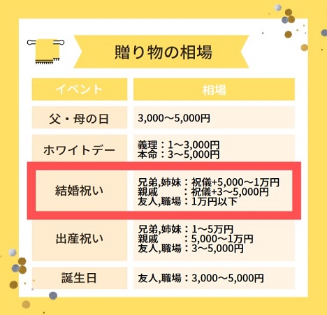 - 兄弟・姉妹:祝儀+0.5~1万円